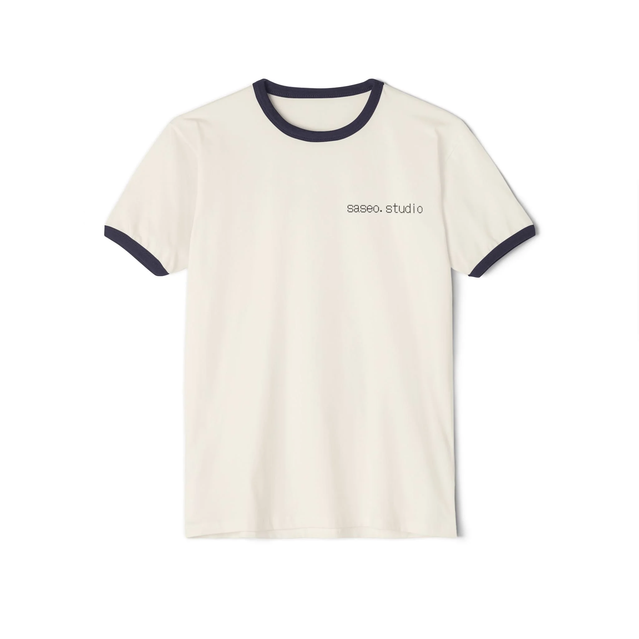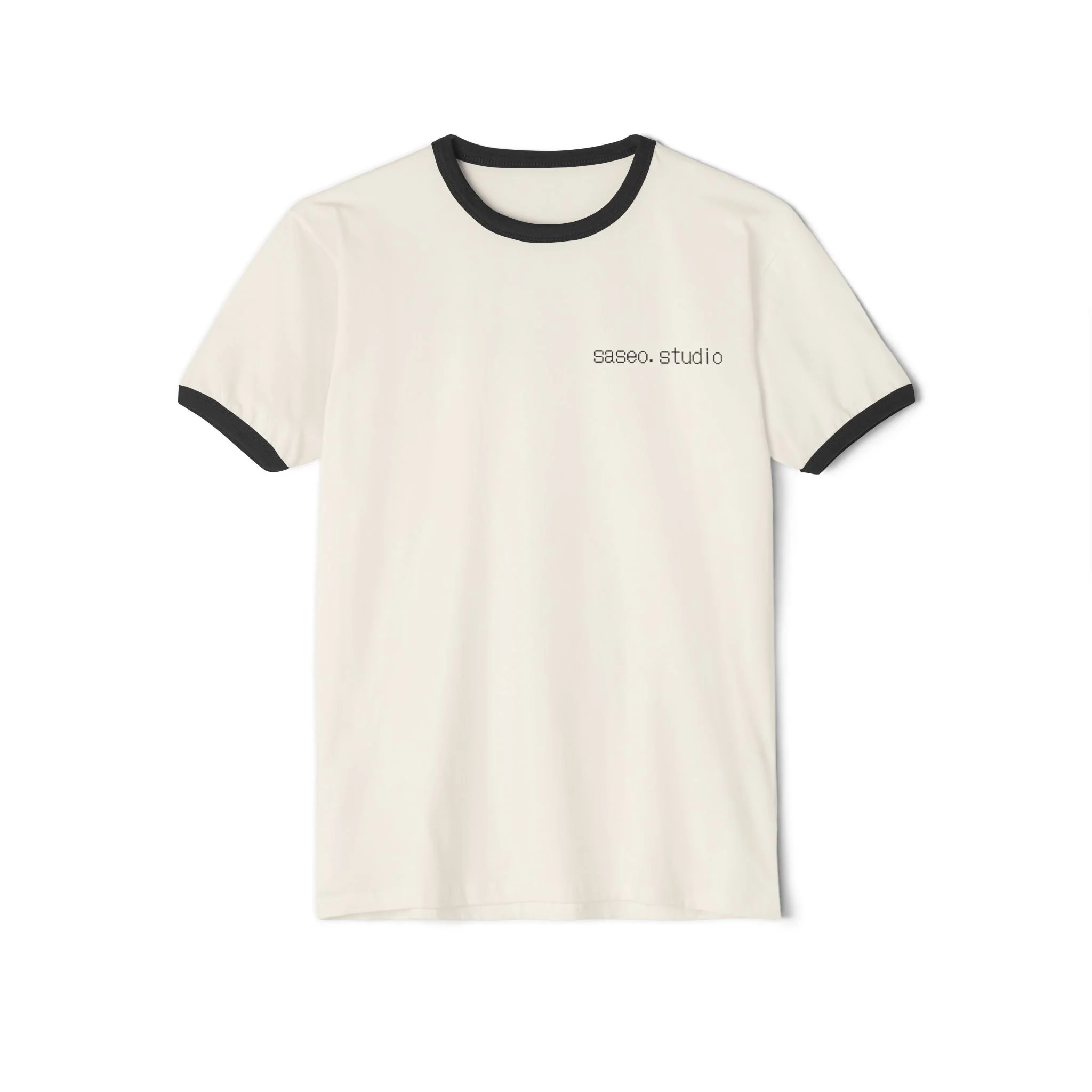 - Contrasting 1x1 rib binding at collar and sleeves for a vintage ringer look