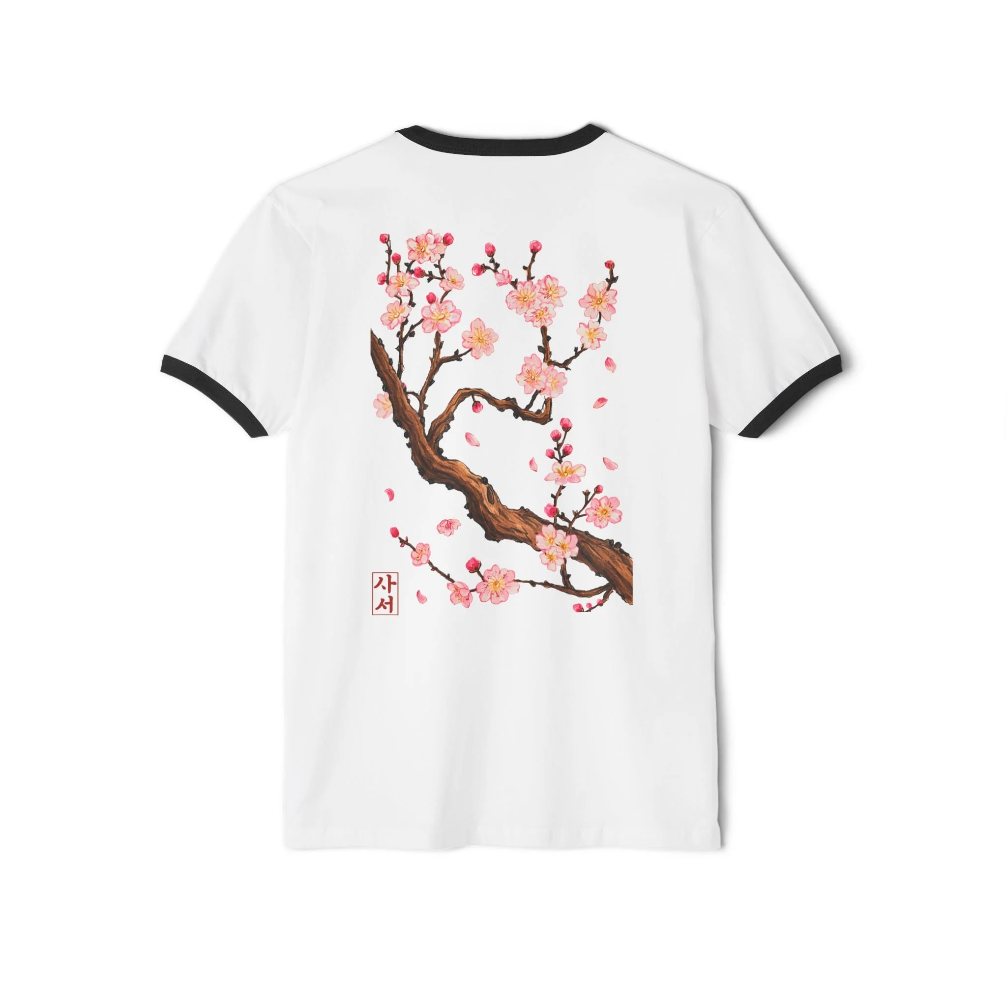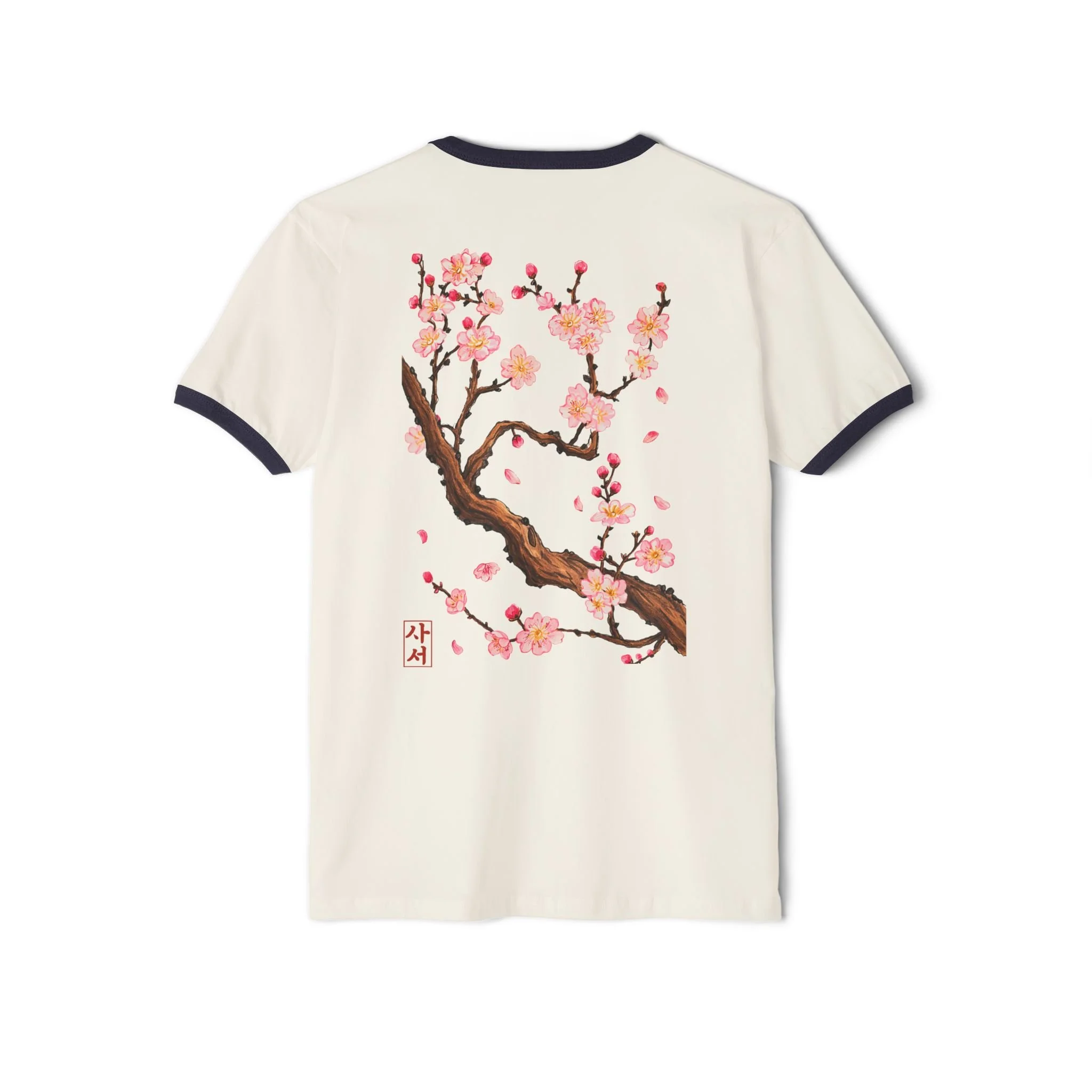 This tee features an original cherry blossom branch design influenced by minhwa, the style of traditional folk paintings known for their expressive nature scenes and natural symbolism. It's a simple, artsy cherry blossom shirt that blends DC's seasonal traditions with Korean-inspired design and the creative vision behind Saseo.Studio.