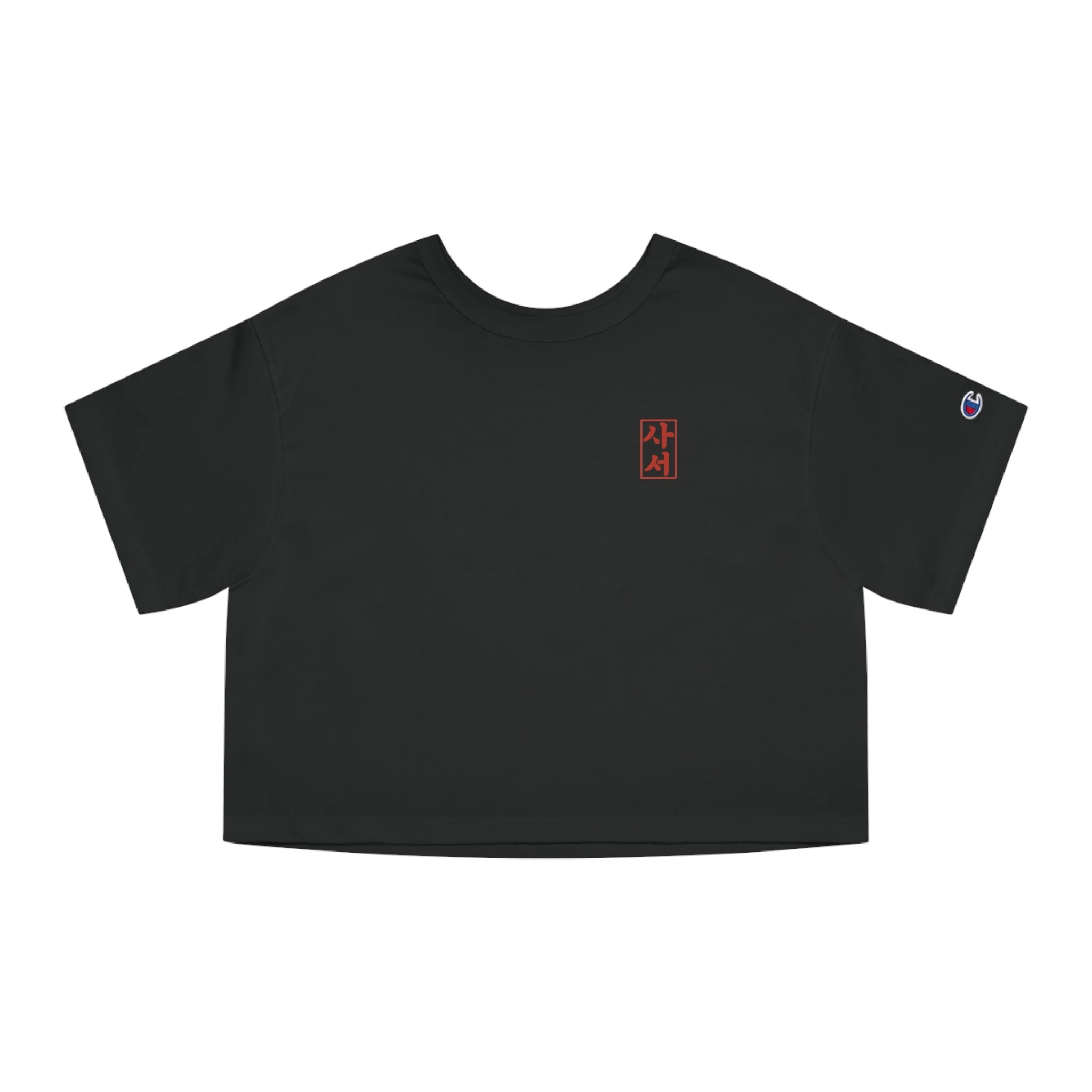 A Saseo.Studio staple. This Champion cropped tee is a Seoul streetwear essential.